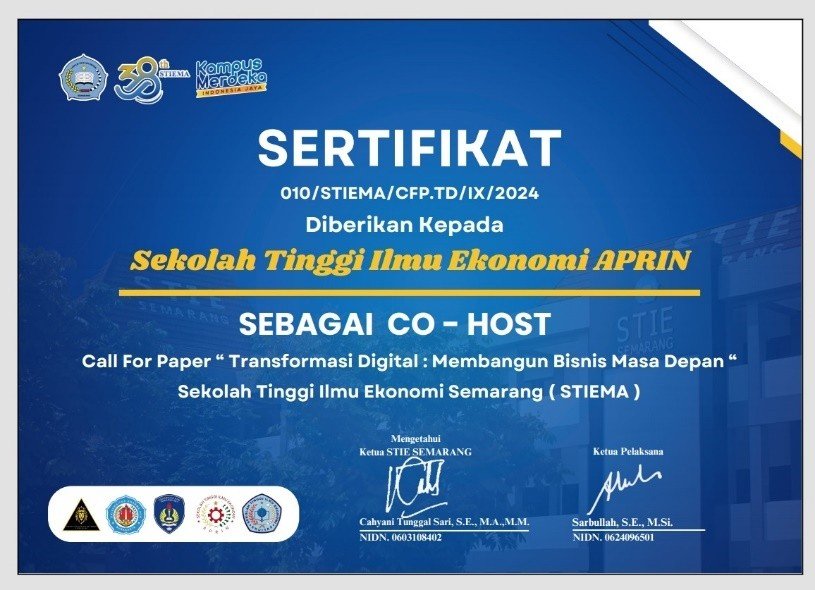 [08 Agustus, 2024] Sekolah Tinggi Ilmu Ekonomi Aprin telah meraih penghargaan bergengsi “Campus Entrepreneurial Marketing