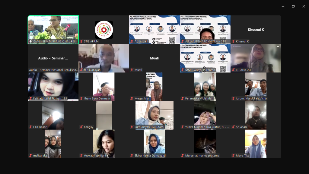 Pada hari Jumat, 2 Agustus 2024, Sekolah Tinggi Ilmu Ekonomi Aprin sukses menyelenggarakan Seminar Nasional Pelatihan Penulisan Artikel Reputasi Nasional. Acara ini diadakan secara offline dan melalui Zoom, serta dihadiri oleh berbagai peserta umum, termasuk mahasiswa, dosen, serta staf dari Sekolah Tinggi Ilmu Ekonomi Aprin. Seminar ini bertujuan untuk meningkatkan kualitas dan keterampilan penulisan artikel ilmiah yang dapat diakui di tingkat nasional. Dengan narasumber yang ahli di bidangnya, peserta diberikan wawasan mendalam mengenai teknik-teknik penulisan yang efektif, struktur artikel ilmiah yang baik, serta cara memilih jurnal yang tepat untuk publikasi.