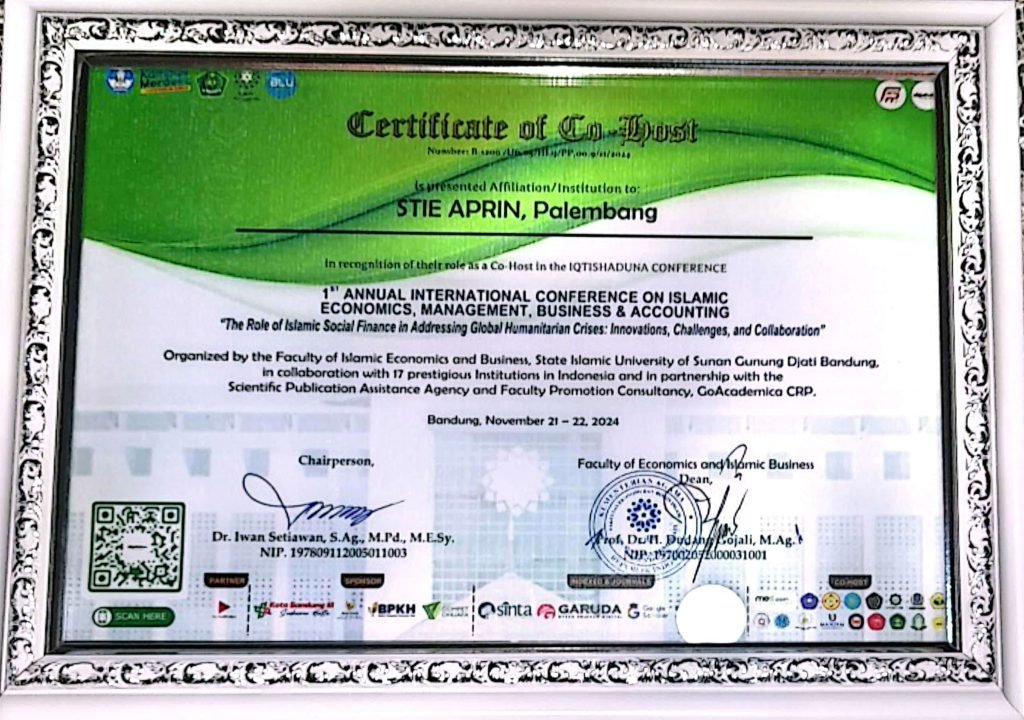 Partisipasi STIE APRIN dalam IQTISHADUNA Conference 1st Annual International Conference on Islamic Economics, Management, Business & Accounting pada 21-22 November 2024 menunjukkan komitmen institusi dalam mendukung kolaborasi antara dosen dan mahasiswa. Dengan dua tim kolaborasi—Dr. H. Dasmadi, S.E., M.M. bersama Abid Khotibul Umam, S.M., serta Debi Septiani, B.POM., M.M. bersama Muhammad Distian Andi Hemawan, SM—STIE APRIN memperlihatkan kontribusi aktifnya dalam diskusi akademik internasional.
