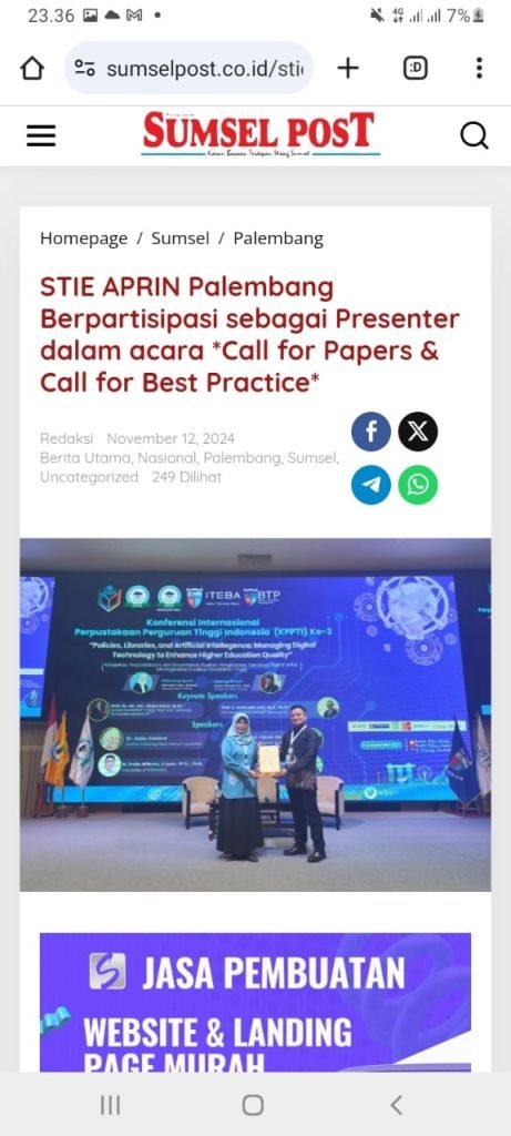 Sekolah Tinggi Ilmu Ekonomi (STIE) APRIN Palembang berpartisipasi sebagai presenter dalam acara *Call for Papers & Call for Best Practice* di Konferensi Internasional Perpustakaan Perguruan Tinggi Indonesia (KPPI) Ke-3