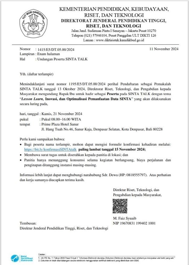 Ketua STIE Aprin Menghadiri SINTA TALK yang di selenggarakan oleh KEMENDIKBUD RISTEK DIKTI