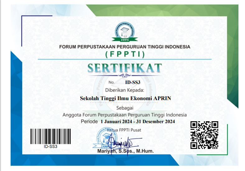 Sekolah Tinggi Ilmu Ekonomi (STIE) APRIN telah terdaftar sebagai **anggota Forum Perpustakaan Perguruan Tinggi Indonesia**,