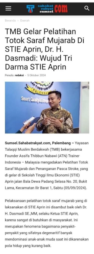 Ketua Sekolah Tinggi Ilmu Ekonomi APRIN baru-baru ini merilis opini di Tribun Sumsel dengan judul