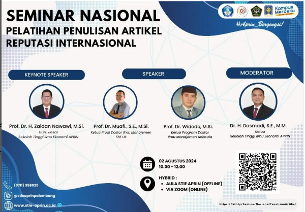 Pada tanggal 02 Agustus 2024, STIE APRIN menyelenggarakan Acara Seminar Nasional Pelatihan Penulisan Artikel Reputasi