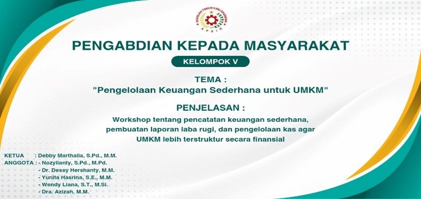 Pengabdian masyarakat ini diketuai oleh Kepala LPPM STIE APRIN Tedy Setiawan Saputra, SE., MM, CRMPA , dan dilaksanakan oleh tujuh tim dosen STIE APRIN yang secara langsung turun tangan untuk membantu para pelaku UMKM dalam meningkatkan kapasitas dan daya saing usaha mereka. Setiap tim memiliki tema yang berbeda sesuai dengan kebutuhan masing-masing UMKM yang didampingi.