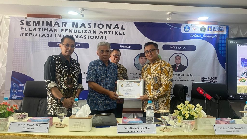 Pada hari Jumat, 2 Agustus 2024, Sekolah Tinggi Ilmu Ekonomi Aprin sukses menyelenggarakan Seminar Nasional Pelatihan Penulisan Artikel Reputasi Nasional. Acara ini diadakan secara offline dan melalui Zoom, serta dihadiri oleh berbagai peserta umum, termasuk mahasiswa, dosen, serta staf dari Sekolah Tinggi Ilmu Ekonomi Aprin. Seminar ini bertujuan untuk meningkatkan kualitas dan keterampilan penulisan artikel ilmiah yang dapat diakui di tingkat nasional. Dengan narasumber yang ahli di bidangnya, peserta diberikan wawasan mendalam mengenai teknik-teknik penulisan yang efektif, struktur artikel ilmiah yang baik, serta cara memilih jurnal yang tepat untuk publikasi.