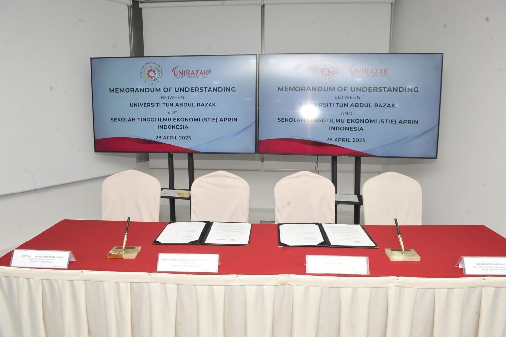Telah dilaksanakan Penandatanganan Memorandum of Understanding (MoU) dan kegiatan International Lecture antara Sekolah Tinggi Ilmu Ekonomi (STIE) APRIN dengan Universiti Tun Abdul Razak.