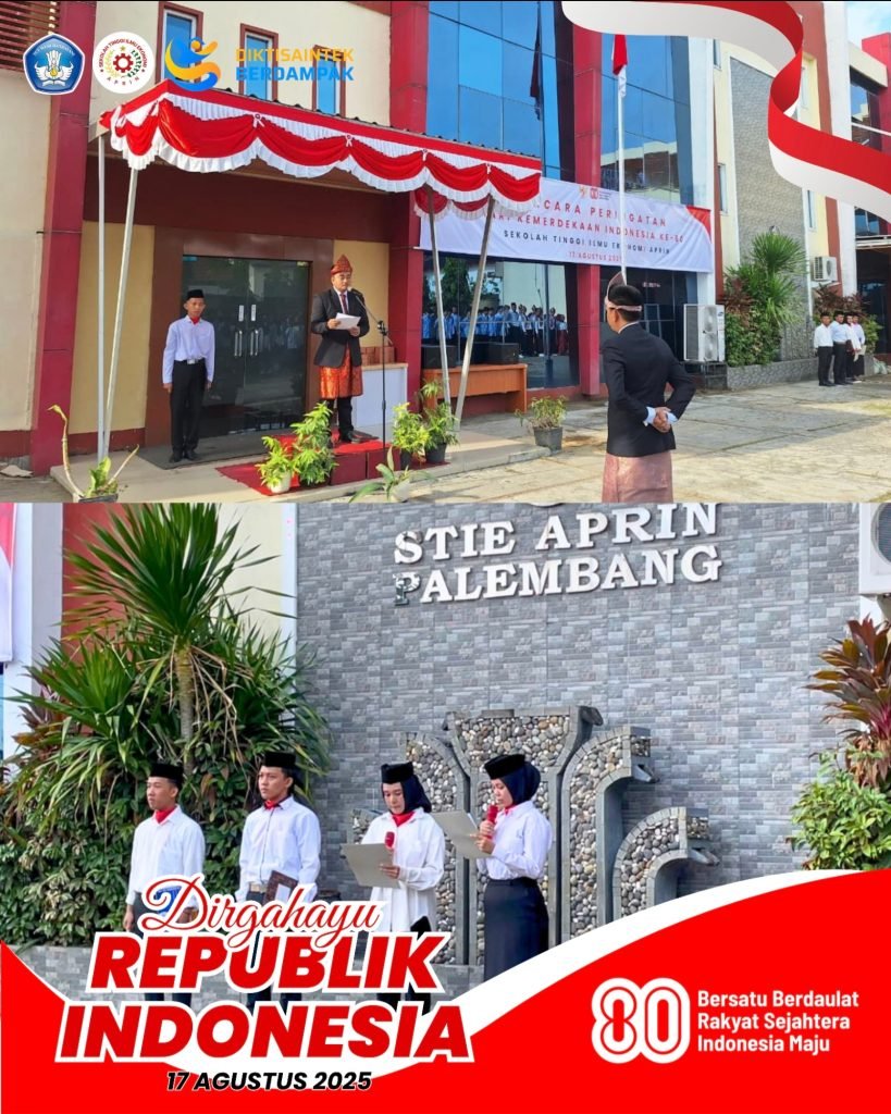 Semarak peringatan HUT RI ke-80 di STIE APRIN digelar melalui Upacara Bendera 17 Agustus 2025 yang khidmat, diikuti oleh seluruh dosen, tenaga kependidikan, dan mahasiswa.